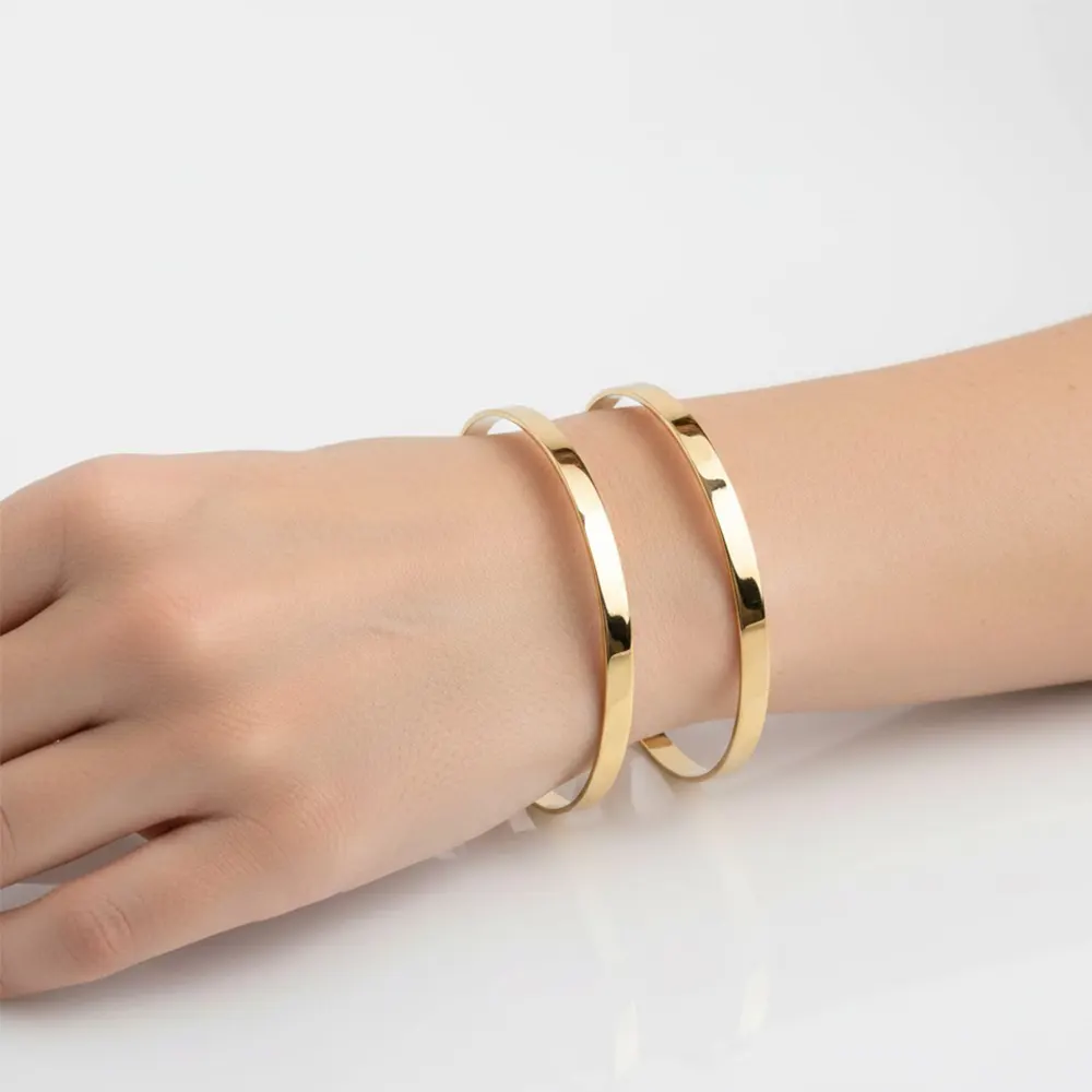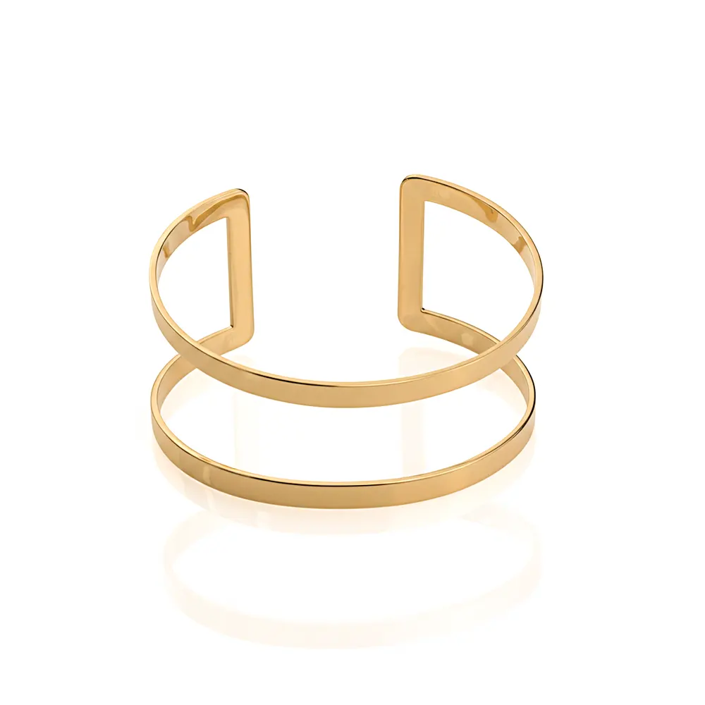Fiecare detaliu al acestei brățări este finisat manual în atelierul nostru, până la atingerea unui luciu oglindă impecabil. Este mai mult decât un accesoriu; este o piesă de moștenire, o investiție în aur masiv care combină forța vizuală a geometriei moderne cu finețea artizanatului de lux.