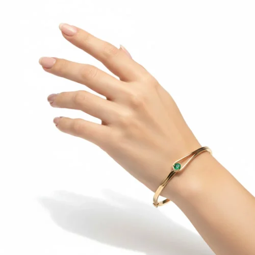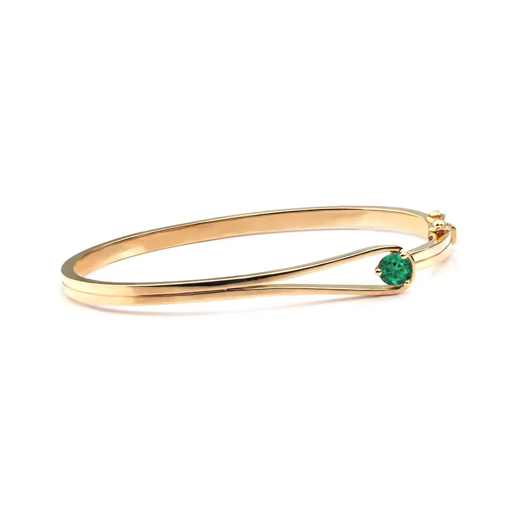 Bratara fixa aur cu smarald natural este o bijuterie eleganta si feminina. Designul fix ofera stabilitate si confort la purtare.