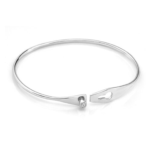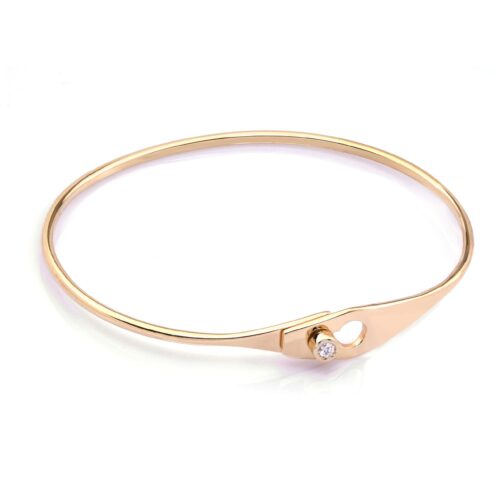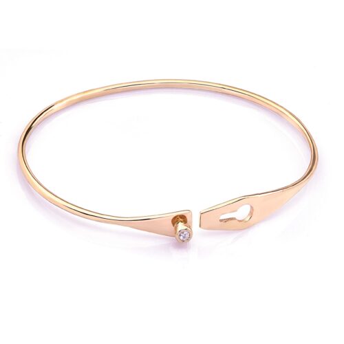 Aceasta bratara fixa aur cu un diamant este realizata manual. Are o latime in partea superioara cu inchidere de 7,50 mm, o grosime de 1,75 mm si o greutate aproximativa de 7,0 grame la marimea de 16 cm. Diamantul are dimensiunea de 3 mm (0,10 ct). Are claritate VS1 si culoare G, oferind un echilibru perfect intre stralucire si puritate.