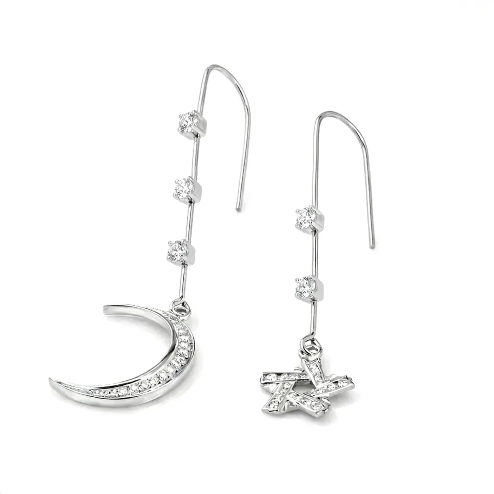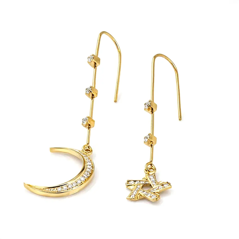 Cerceii sunt realizati din aur de 14K, oferind durabilitate si stralucire de lunga durata. Elementele luna si stea sunt atent finisate si decorate cu diamante, pentru un efect subtil si elegant.