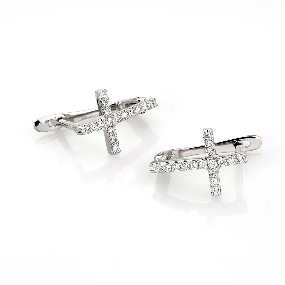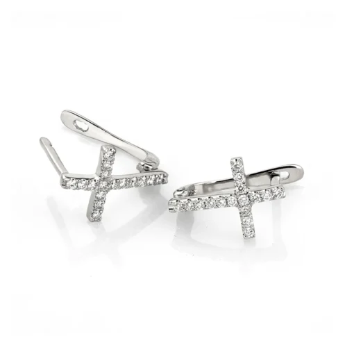 Setul de cercei sunt montate 32 de diamante naturale de 1,3 mm, cu un carataj total de 0,32 ct. Strălucirea lor fină scoate în evidență forma clasică de cruce, oferind un efect elegant și plin de simbolism.