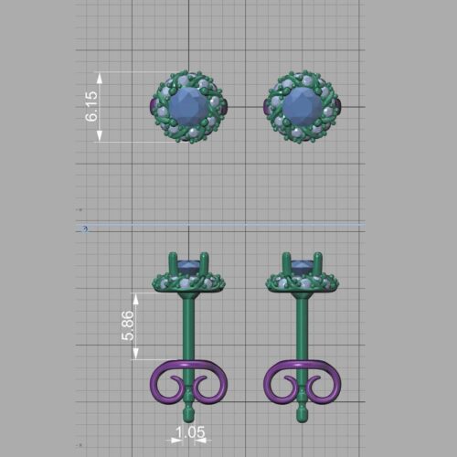 Cercei realizate din aur cu o greutate de 1,7 gr., cu 2x 3,5mm ct.(0,32ct) diamante centrale si 32x1mm(0,12ct)
