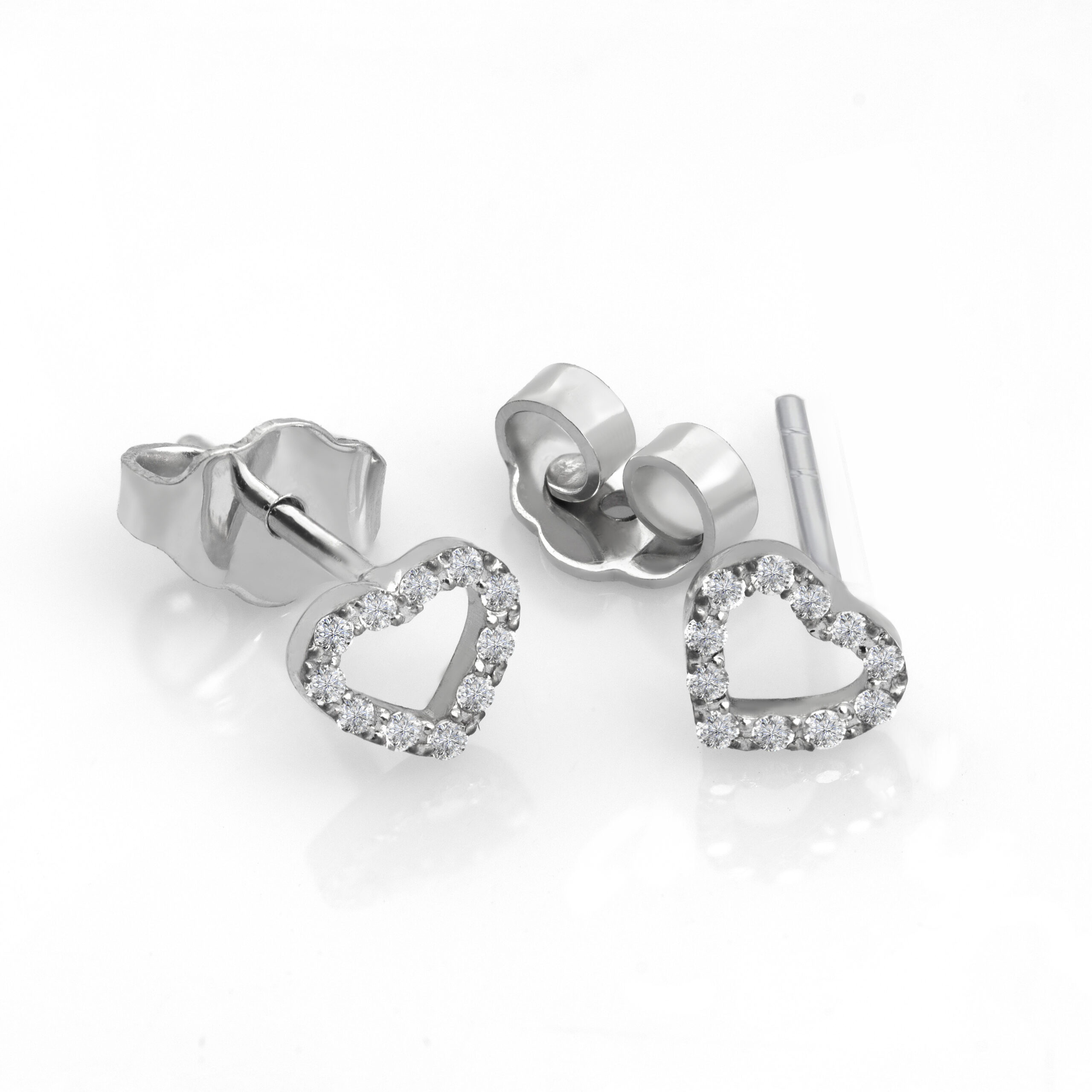 Cercei Inimioara din Aur cu Diamante sunt bijuterii fine și rafinate, perfecte pentru ocazii speciale. Realizați din aur alb de 14K, au un design delicat în formă de inimioară. Fiecare cercel este decorat cu 11 diamante de 1,2 mm, atent montate pentru un plus de strălucire.