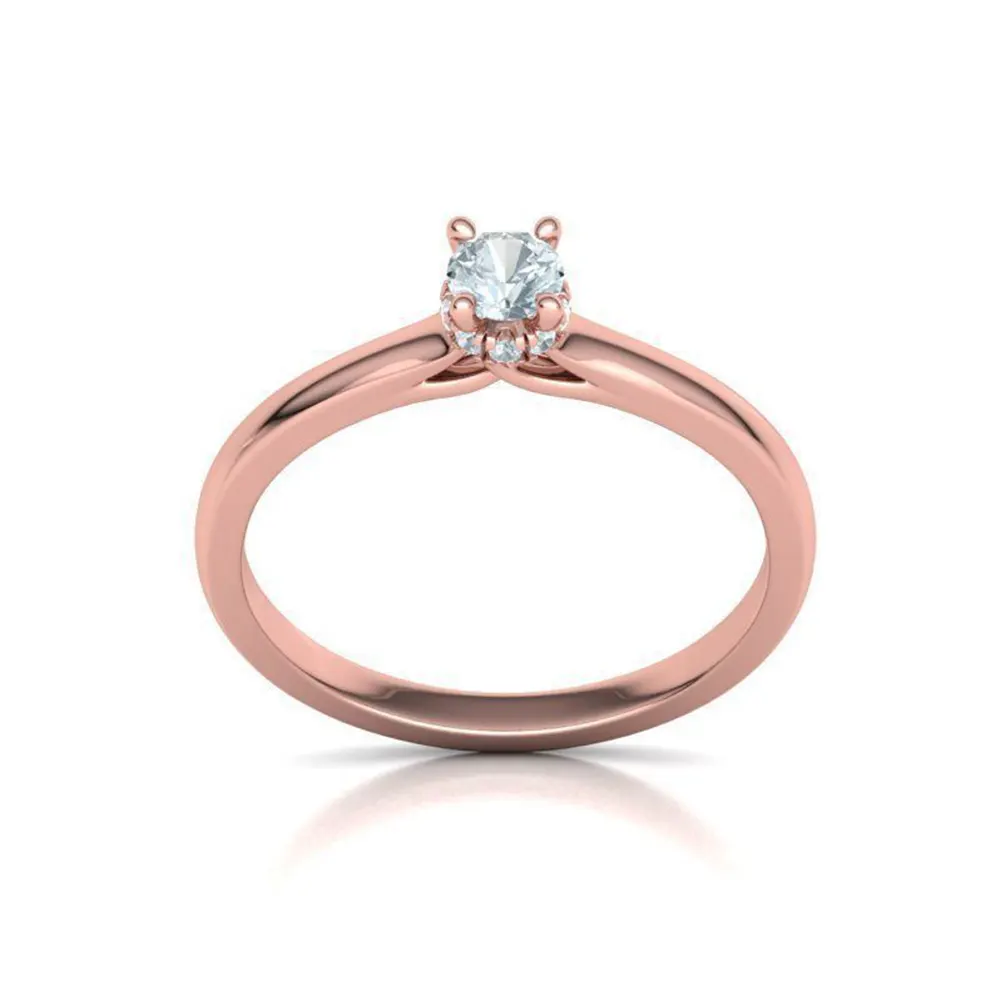 Sub diamantul central se regăsește un halo delicat compus din 9 diamante mici de 1mm , care adaugă o notă de lux discret și o strălucire suplimentară vizibilă din profil. Acest lucru ii confera o stralucire autentica si un farmec aparte.