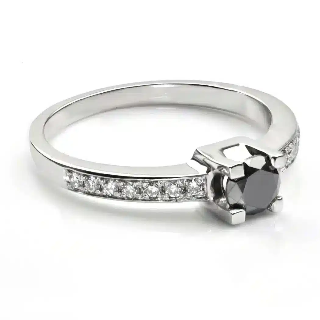 Aurul alb ofera un aspect modern si rafinat, completand perfect stralucirea misterioasa a diamantului negru.