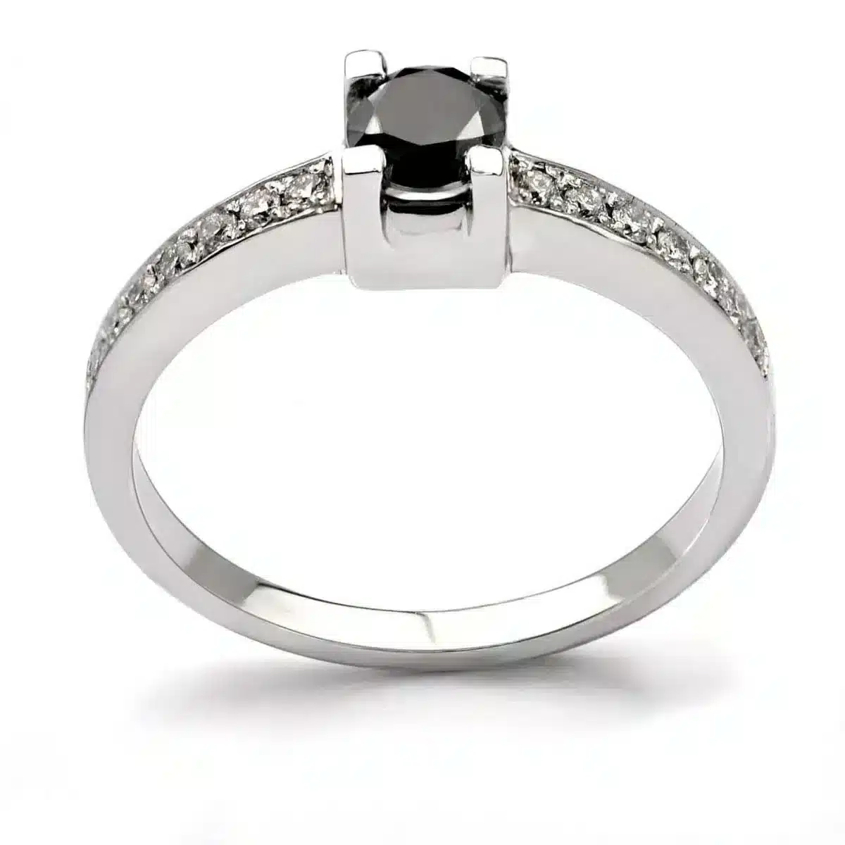 Inel aur alb cu diamant negru este o bijuterie eleganta, ideala pentru cei care apreciaza stilul sofisticat.