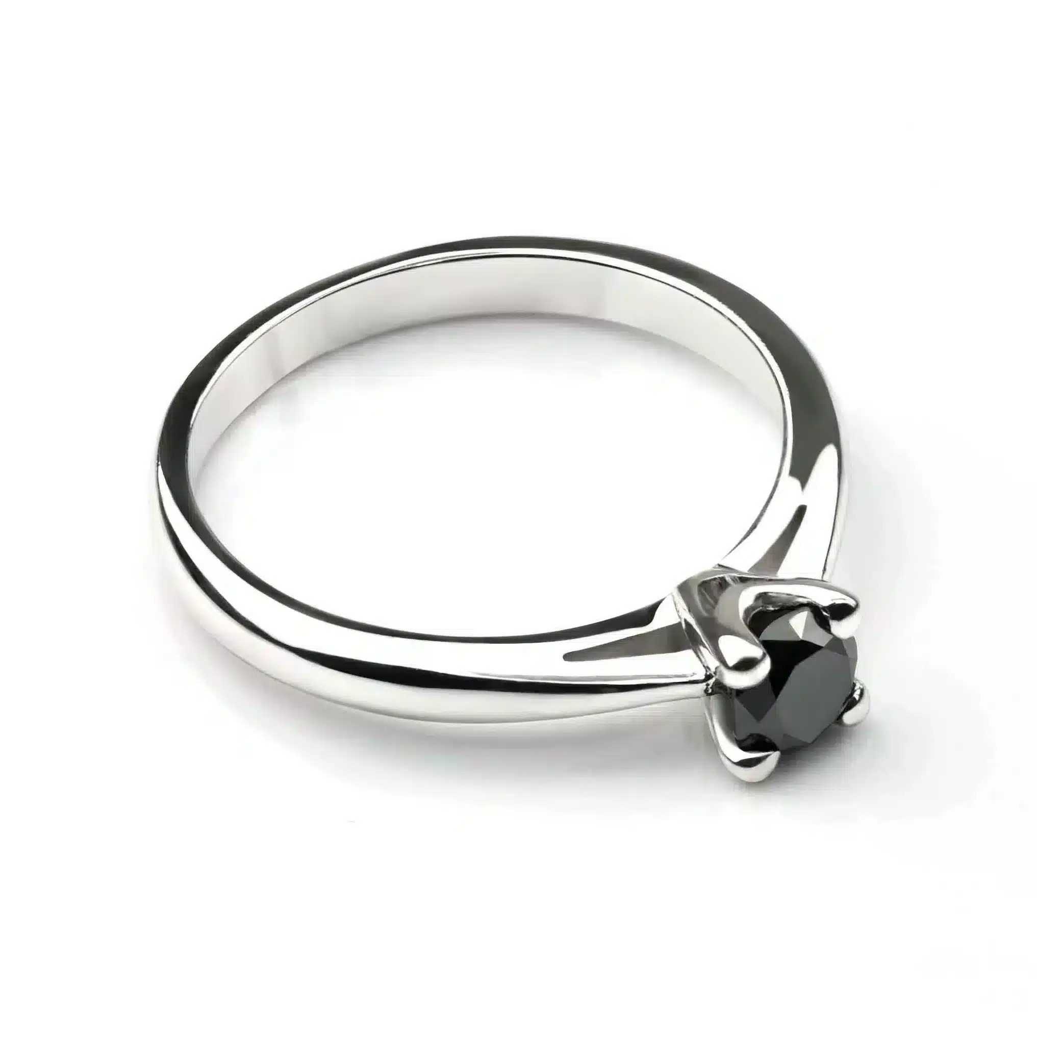 Inel aur cu diamant negru solitaire realizat din aur de 14 ct. cu un diamant negru de 0,38ct. si un gramaj de 2,5gr.