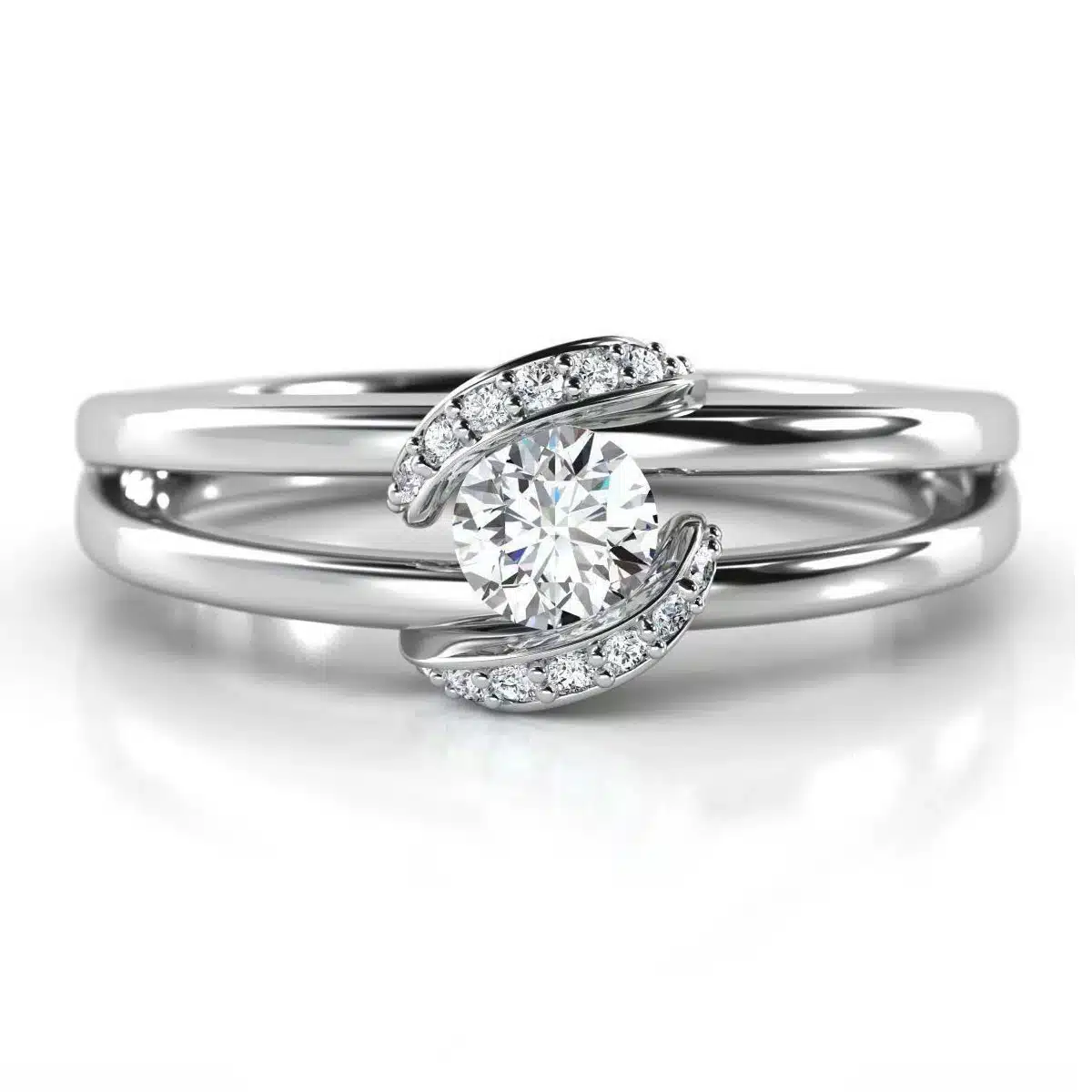 Inel de logodna aur alb executat din aur cu un gramaj de 4.3 gr avand montat un diamant central de 0,25ct ,12 diamante de 1mm cat si doua de 0,9mm cu un carataj total de 0,08ct