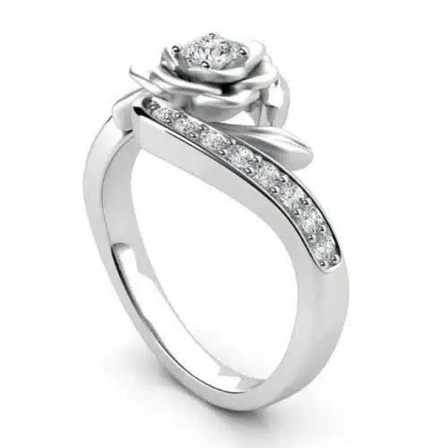 Acest inel de logodnă potrivit din aur alb reprezintă o promisiune de iubire și devotament, simbolizată de frumusețea unui diamant trandafir.