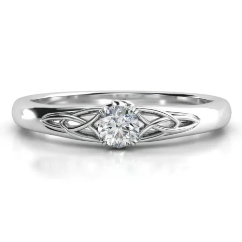 Inel logodna Nodul Celtic cu Diamant realizat din aur de 14 ct. cu un gramaj de aprox. 3.3 gr.Dimensiunea diamantului este de 3,5mm – 0,16 ct.
