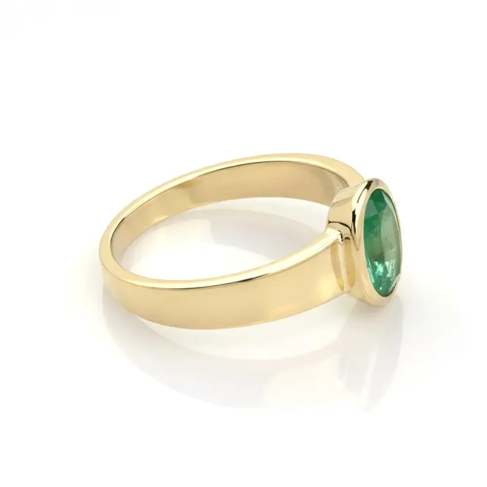 Redescoperă farmecul clasic într-o interpretare modernă. Acest inel din aur pune în valoare frumusețea unui smarald natural. Smaraldul are o tăietură ovală impecabilă. Bijuteria emană rafinament și discreție.