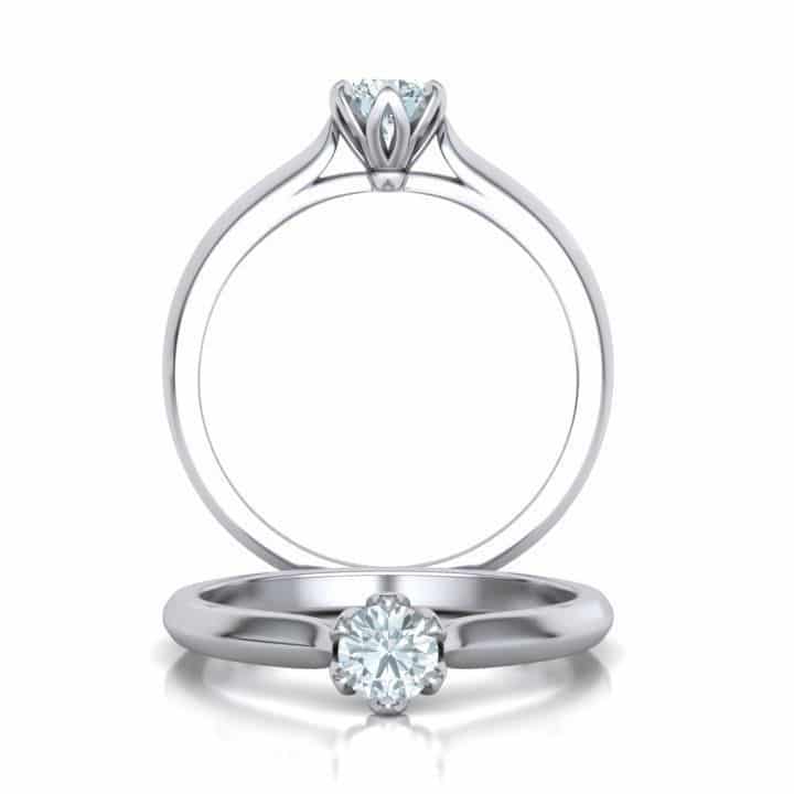 Pășește într-un nou capitol al iubirii alături de acest inel de logodnă Solitaire, creat pentru momente memorabile. Diamantul rotund de 0,30 ct, cu claritate SI și culoare G–H, strălucește cu o intensitate pură, captând perfect fiecare rază de lumină și reflectând eleganță, rafinament și pasiune.