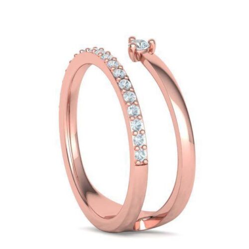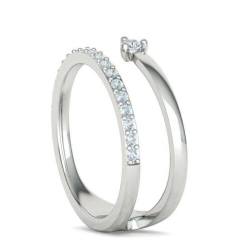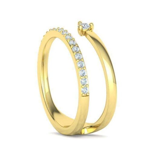 Inel realizat din aur cu doua brate cu un gramaj de aprox.3,4 gr. avand montat pe primul barat un diamant central rotund de 2,5mm (0,06ct) iar pe celalalt brat 18 diamante de 1,5mm(0,30ct)
