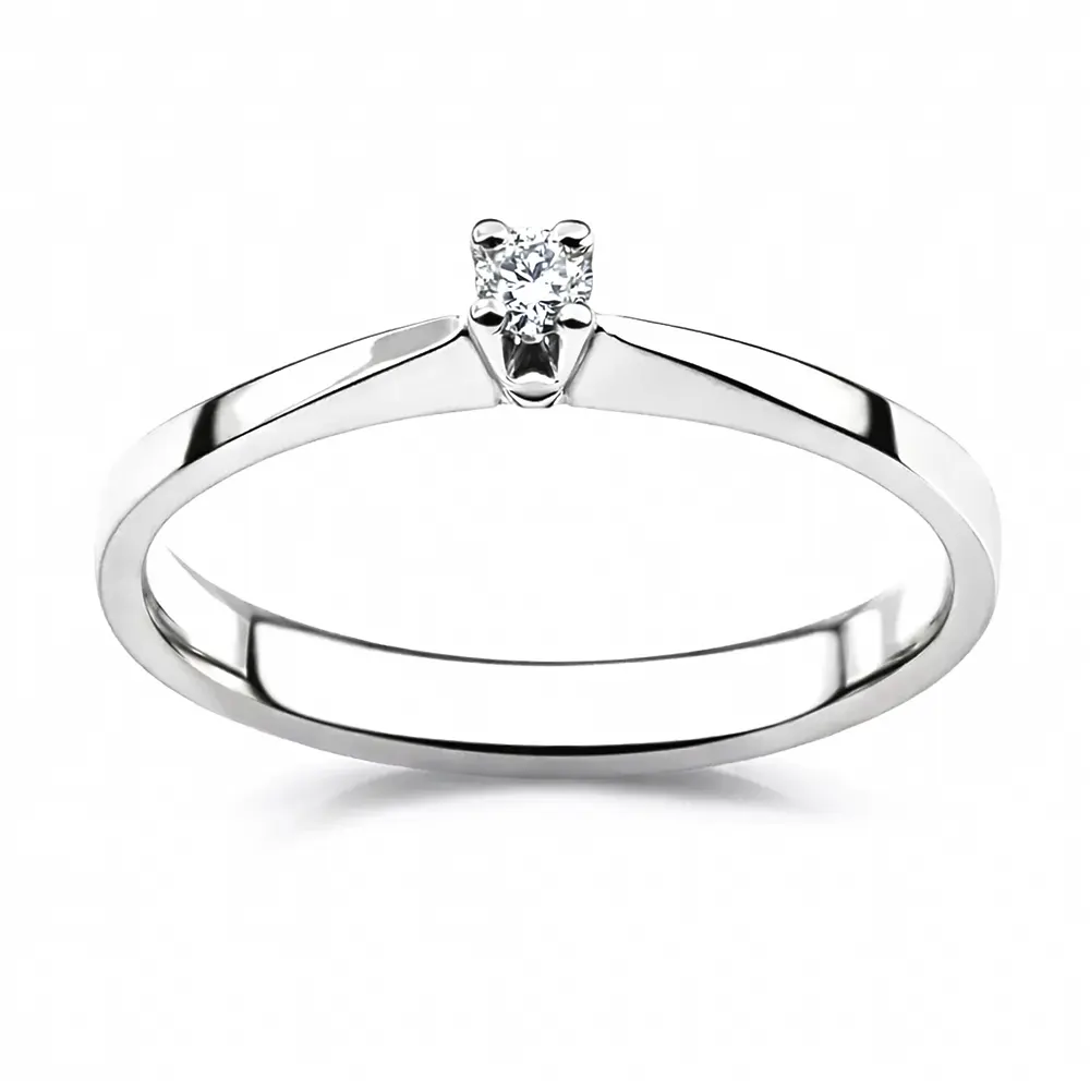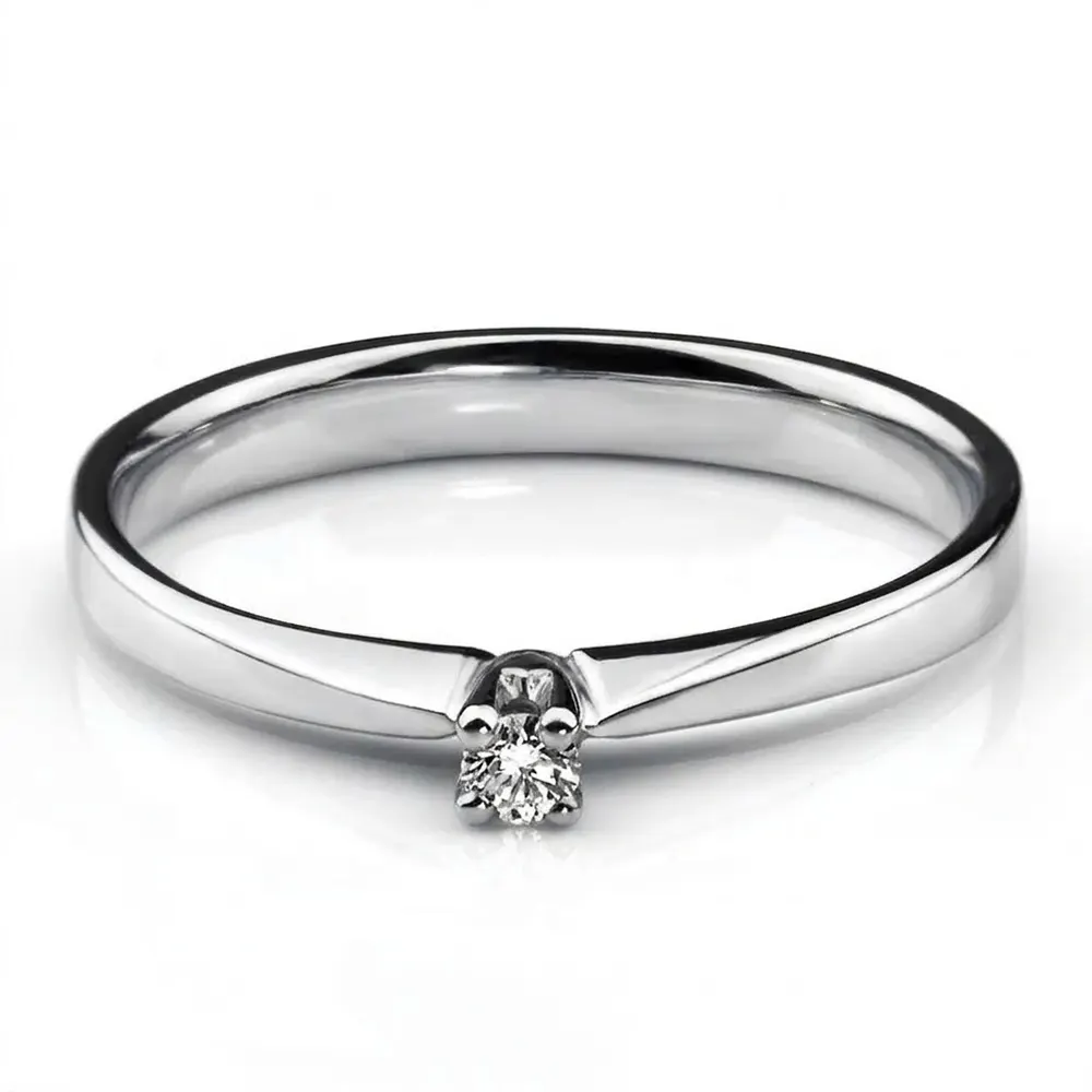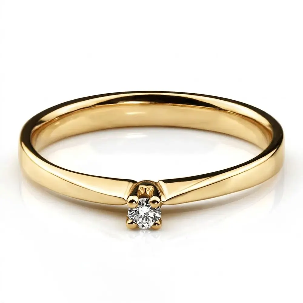 Inel Simplu cu Diamant 0.05ct. Designul său minimalist evidențiază strălucirea pietrei prețioase, fiind ideal pentru cei care iubesc stilul clasic și rafinat.