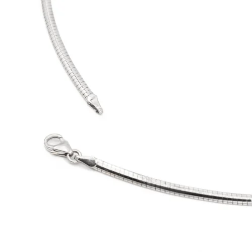 Designul sau elegant ofera o stralucire uniforma si un aspect rafinat, punand in valoare zona gatului. Datorita formei sale plate, lantul se aseaza perfect si poate fi purtat atat singur, cat si cu un pandantiv fin.