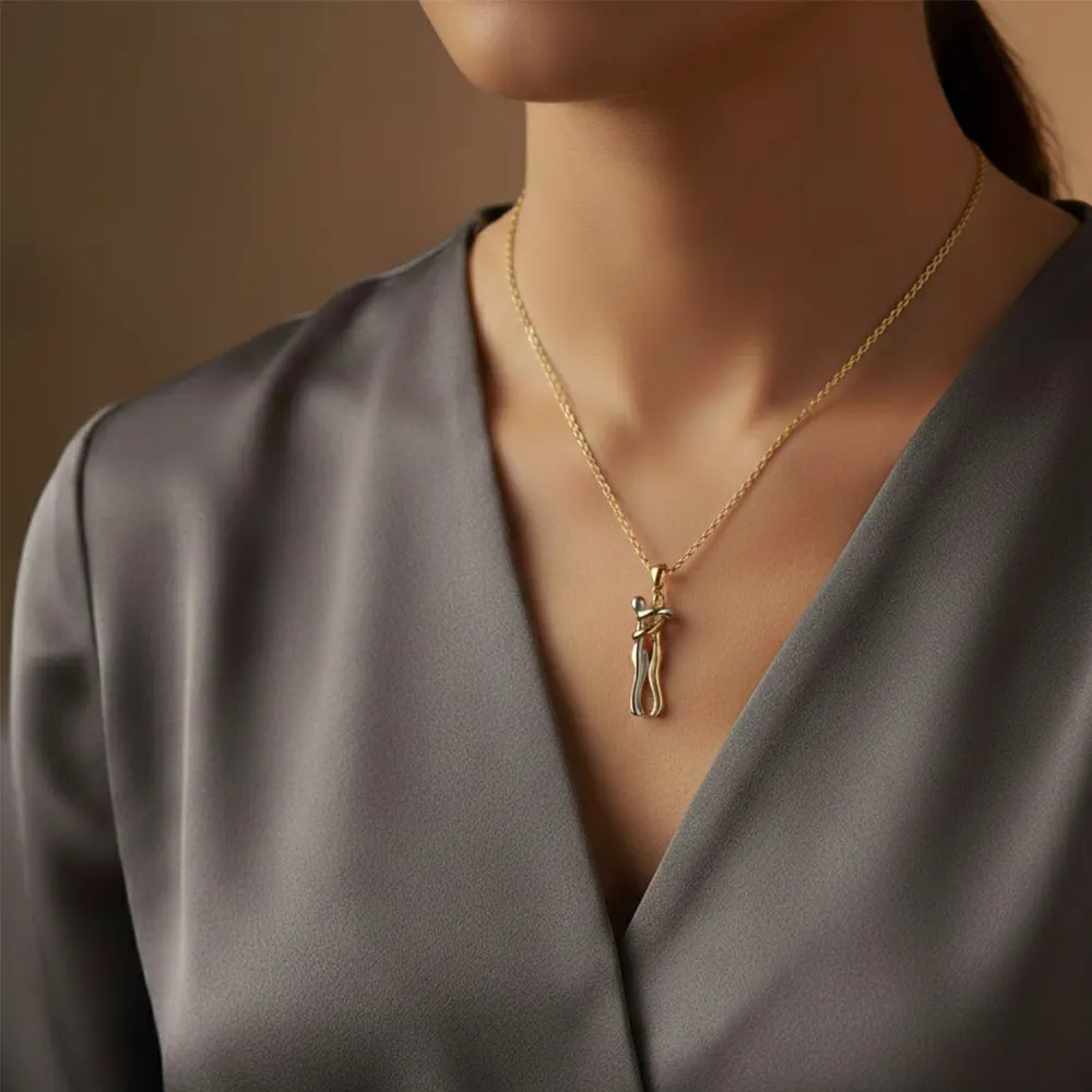 Pandantiv imbratisare din aur poate fi asortat cu un lanț din aur pentru a crea un accesoriu sofisticat, perfect pentru orice stil.