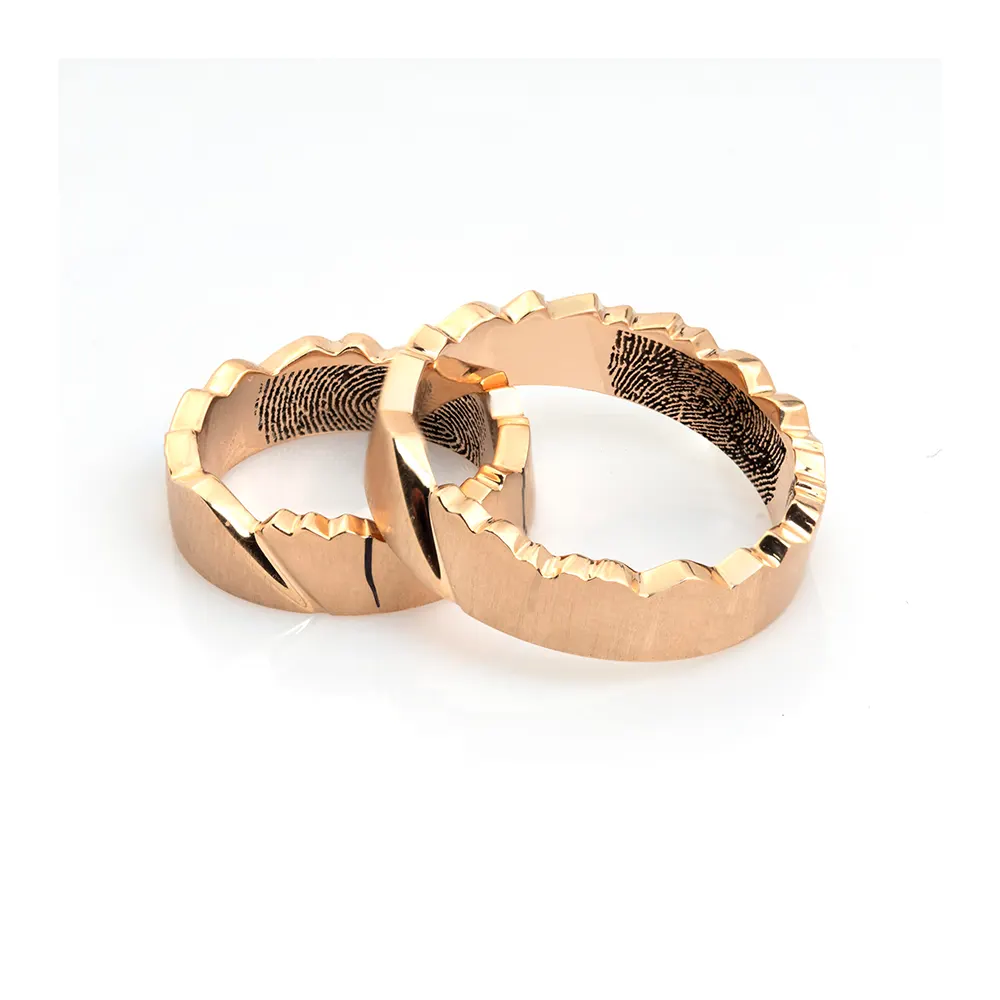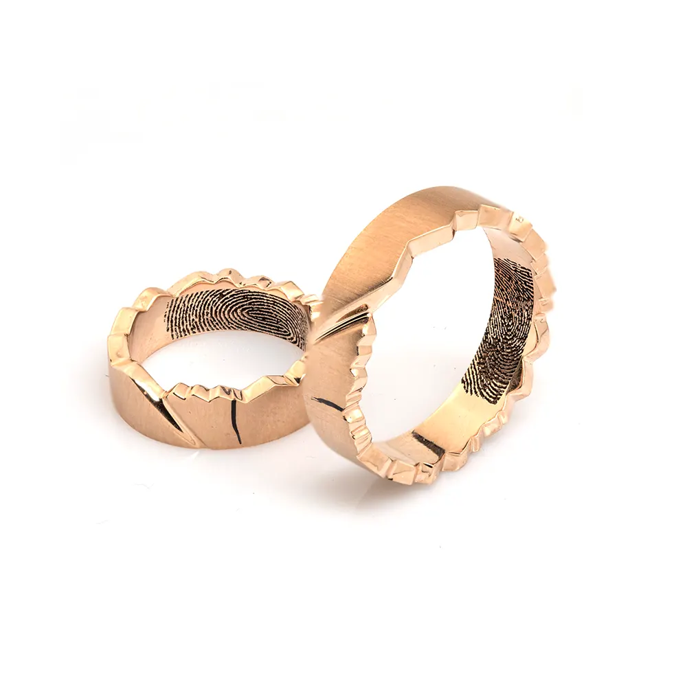 Verighete Aur 14K/18K Zimțate cu Amprenta îmbină eleganța clasică cu un detaliu unic și personal, fiind alegerea ideală pentru un set de verighete personalizate. Sunt realizate manual în atelierul nostru din aur de calitate superioară, având un design zimtat fin ce adaugă rafinament și un stil modern.