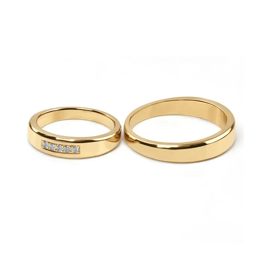 Verighete realizate manual avand o forma asimetrica cu o latime pe o parte de 4,8mm iar in partea opusa de 2,8mm