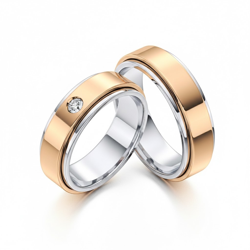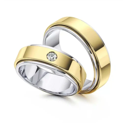 Verighete Aur Doua culori cu diamant combină armonios aurul galben și alb pentru un design elegant și simbolic.
